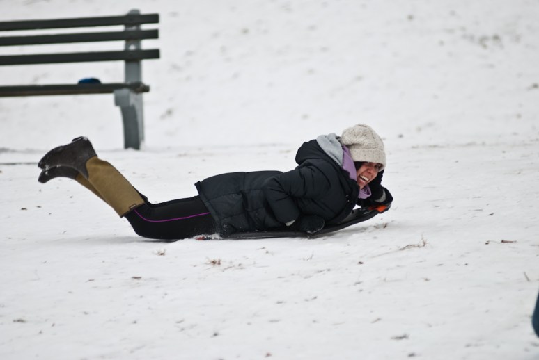 Okay, maybe it’s not the first snow we’ve seen in the city in 2012, but there’s actually snow on the ground, as opposed to snow that melts before it even hits the pavement. Some sledding pictures from a nice and cold walk to Fort Greene park.